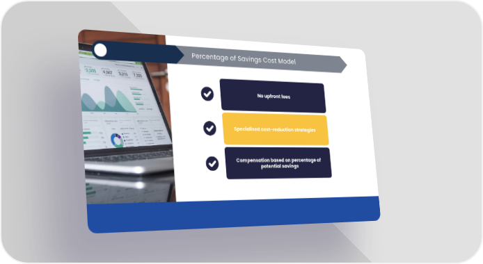 Percentage of Savings Cost Model No upfront fees Specialised cost-reduction strategies Compensation based on percentage of potential savings