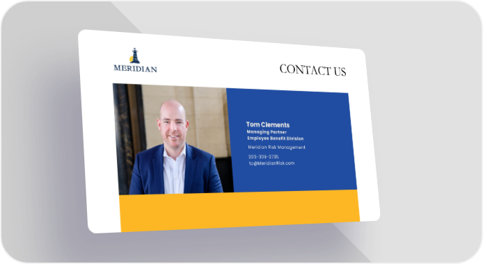 203-339-2735 [email protected] Tom Clements Managing Partner Employee Benefit Division Meridian Risk Management CONTACT US