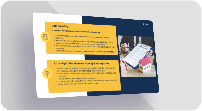 If you have Medicare and qualify for full Medicaid coverage: Your state will pay your Medicare Part B (Medical Insurance) monthly premiums Depending on the level of Medicaid you qualify for, your state might pay for: Medicare costs like deductibles, coinsurance, and copayments Part A (Hospital Insurance) premiums, if you have to pay a premium for that coverage Medicaid may pay for other drugs and services that Medicare doesnt cover Based on resources and income, some may also qualify for Extra Help with the costs associated with a Medicare prescription drug plan Can help with monthly premiums, annual deductibles, and prescription co - payments Many qualify for the program and are unaware Social Security will need to know the value of your savings, investments, real estate (other than your home), and your income Dual Eligibility: Extra Help/LIS for Medicare Prescription Drug Costs: