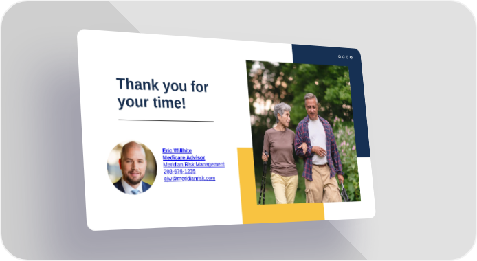 Thank you for your time! Eric Willhite Medicare Advisor Meridian Risk Management 203 - 676 - 1235 ejw@meridianrisk.com