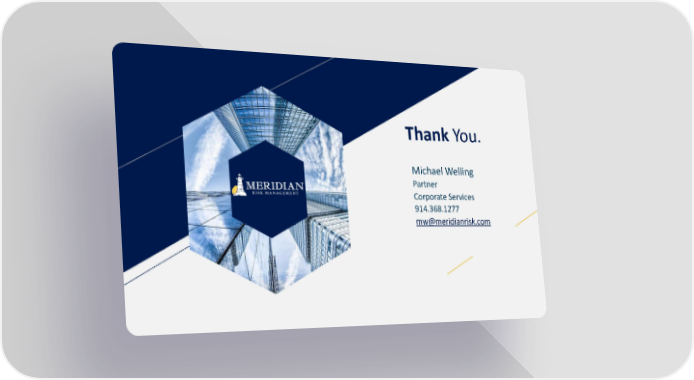 Thank You. Michael Welling Partner Corporate Services 914.368.1277 mw@meridianrisk.com MRM Corporate Services Group Page 9