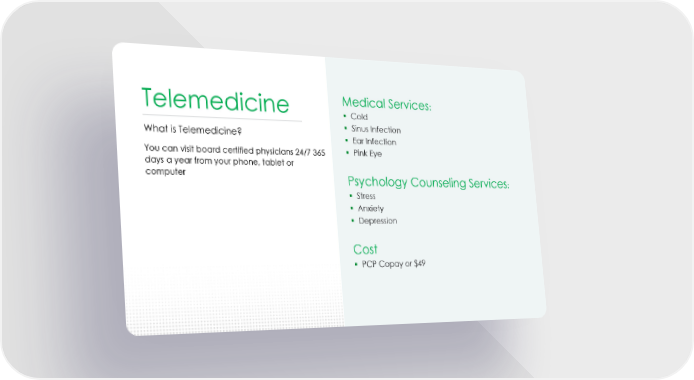 Telemedicine Medical Services: § Cold What is Telemedicine? § Sinus Infection § Ear Infection You can visit board certified physicians 24/7 365 § Pink Eye days a year from your phone, tablet or computer Psychology Counseling Services: § Stress § Anxiety § Depression Cost § PCP Copay or $49