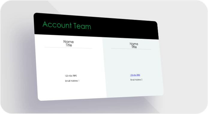 Account Team Name Name Title Title 123-456-7890 123-456-7890 Email Address 1 Email Address 2
