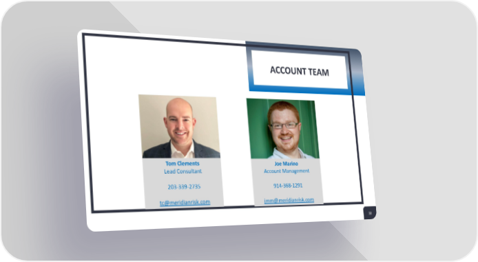 Sample Open Enrollment Presentation Page 29 Page 31ACCOUNT TEAM Tom Clements Joe Marino Lead Consultant Account Management 203-339-2735 914-368-1291 tc@meridianrisk.com jmm@meridianrisk.com 30