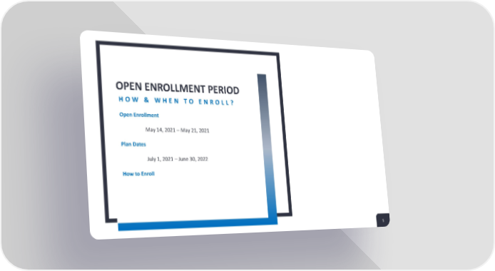 Sample Open Enrollment Presentation Page 4 Page 6OPEN ENROLLMENT PERIOD HOW & WHEN TO ENROLL? Open Enrollment May 14, 2021 – May 21, 2021 Plan Dates July 1, 2021 – June 30, 2022 How to Enroll 5